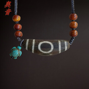 奥音S藏传密宗玛瑙传世敬仰牙黄绿度母老天珠民族风老天珠项链吊坠