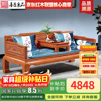 善匠良品深色名贵硬木金花梨木(学名:番龙眼)实木床中式罗汉床双人大床