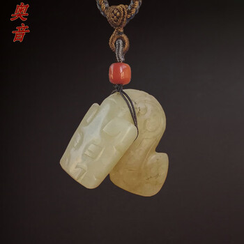 奥音西周制式老和田白玉卷尾龙挂件,高端老和田玉收藏
