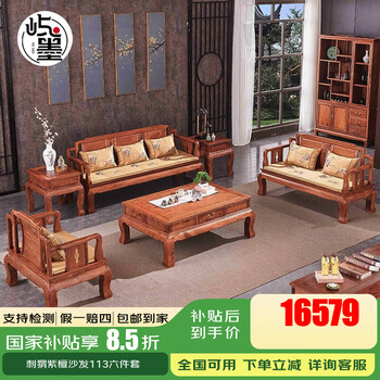 曦世 红木家具非洲花梨(学名:刺猬紫檀)沙发 实木沙发组合仿古中式别墅客厅家具