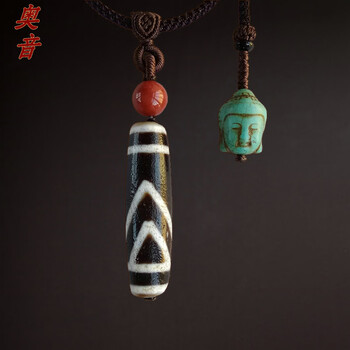 奥音S藏传玛瑙传世两眼雕刻月下老人老天珠民族风手工项链