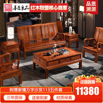 善匠良品 红木家具非洲花梨(学名:刺猬紫檀)沙发 实木沙发组合仿古中式别墅客厅家具