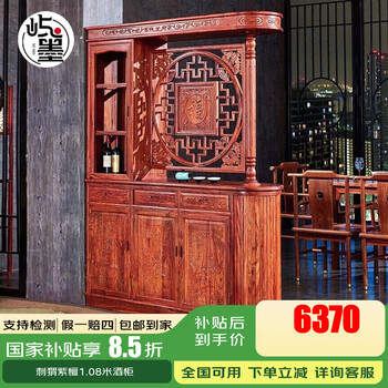屿墨 红木家具非洲花梨(学名:刺猬紫檀)双面间厅柜实木酒柜中式 福字酒柜