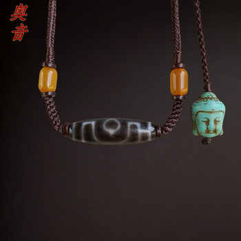 奥音S15藏传玛瑙朱砂沁九眼老天珠高级 民族风男女款老天珠项链吊坠