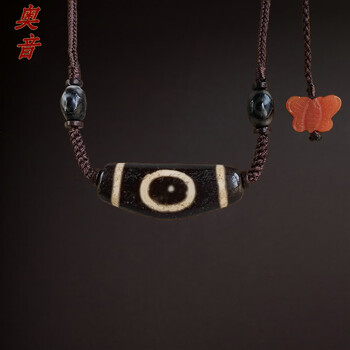 奥音S2藏传玛瑙传世敬仰牙黄特殊四眼老天珠民族风项链吊坠