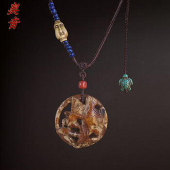 奥音辽代制式无优化老蜜蜡春山秋水项链吊坠&老蜜蜡项链