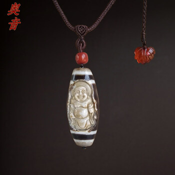 奥音Y10藏传玛瑙牙黄莲师三眼老天珠真老无做旧高级民族风老天珠项链