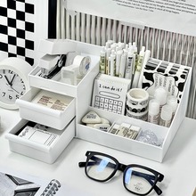 日式白色收纳盒分隔抽屉式简约文具盒学生宿舍寝室用品整理神器