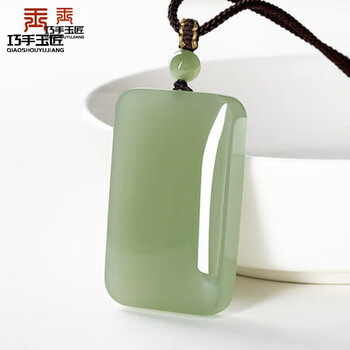 巧手玉匠新疆和田玉吊坠湖水绿平安无事牌男女款鸭蛋青玉坠带证书