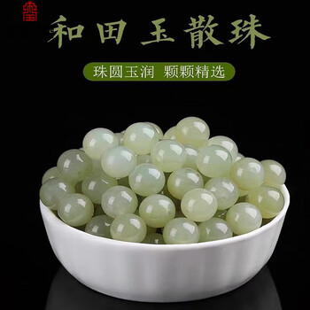 金玉兰香(JIN YU LAN XIANG)天然和田玉散珠青白玉圆珠晴水绿手串羊脂玉手链男女手串配件