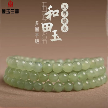金玉兰香(JIN YU LAN XIANG)天然冰晴水和田玉多圈手串108颗项链女佛珠三圈念珠串珠手链礼物