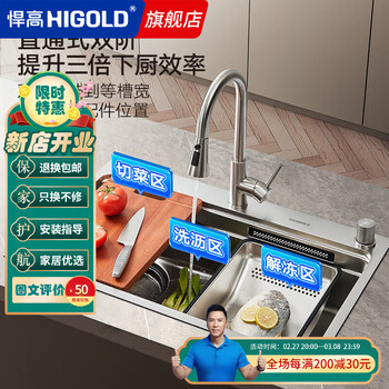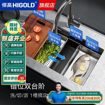 悍高 HIGOLD 厨房黑钛蜂窝304不锈钢手工单槽洗菜盆大单槽厨房洗碗池水槽