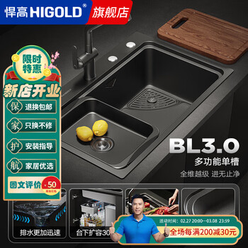 悍高 HIGOLD厨房水槽单槽纳米 双阶梯水槽304不锈钢加厚水盆淘菜盆厨房石纹槽