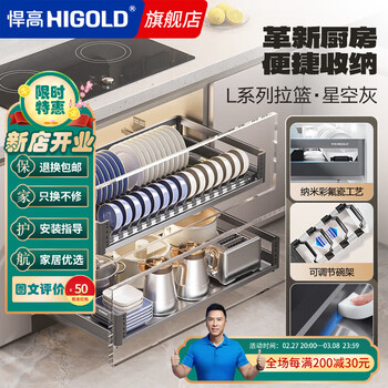 悍高 HIGOLD橱柜拉篮双层开门式内置碗篮304不锈钢厨房收纳碗架篮碗碟篮