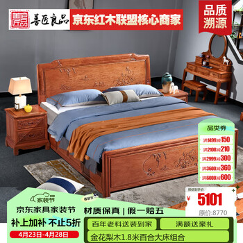 善匠良品深色名贵硬木金花梨木(学名:番龙眼)实木床卧室家具中式双人大床