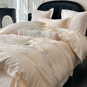 苏丽妃180支全棉纯棉长绒棉四件套轻奢刺绣被套床单床笠四季款床上用品