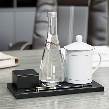 粒矜黑色pu皮质商务会议杯托杯垫A4会议垫板夹茶具配件可加急定制logo