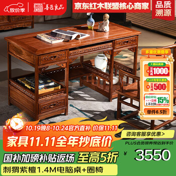 善匠良品 红木家具非洲花梨(学名:刺猬紫檀)书桌电脑桌 实木书桌椅组合 中式办公桌