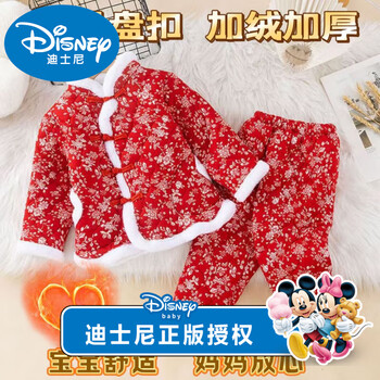 迪士尼男女童冬季套装新年新款汉服中国儿童唐装加厚宝宝喜庆拜年两件套
