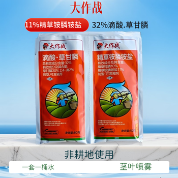 大作战32%滴酸草甘膦11%精草铵膦铵盐10%精草铵膦除草剂