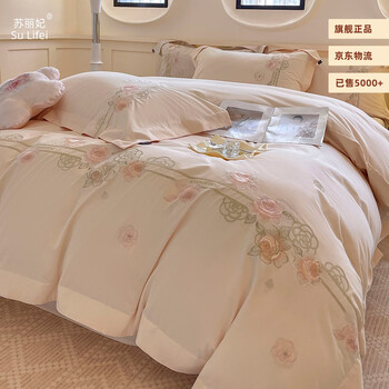 苏丽妃A类200支长绒棉四件套全棉纯棉被套高级感裸睡床单床笠公主风床品