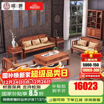 曦世 红木家具非洲花梨(学名:刺猬紫檀)沙发 实木沙发组合仿古中式别墅客厅家具