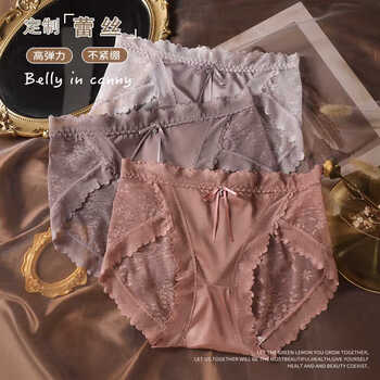 轻奢缎面蕾丝内裤女性感舒适中高无痕透气亲肤提花纯欲大码三角裤