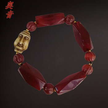 奥音战国制式老红玛瑙三才环*古典中国风老玛瑙项链吊坠