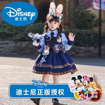 迪士尼女童秋冬加绒公主裙疯狂动物城儿童衣服卡通朱迪兔子警官洛丽塔裙