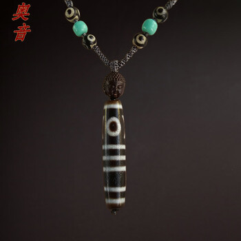 奥音S17藏传玛瑙传世敬仰牙黄七眼老天珠真老无做旧民族风项链吊坠