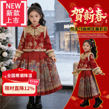 衣宫阁(YIGONGGE)女童汉服马面裙冬季新年衣服儿童冬装连衣裙女孩过年拜年公主裙子