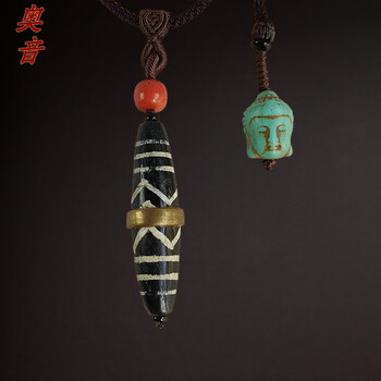 奥音西亚老法银鎏金箍镶嵌瑙水纹老天珠高级民族风男女款手工项链有残