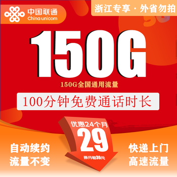 中国联通(UNICOM)浙江联通流量卡上网卡手机卡流量王电话卡大王卡低月租通用不限速非永久套餐