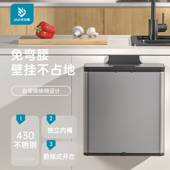 璞晟430不锈钢厨房垃圾桶橱柜门挂式免打孔家用厨余桶免弯腰带盖防臭大容量宽口卫生间收纳桶纸篓内外双桶新款