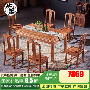 屿墨 红木家具非洲花梨(学名:刺猬紫檀)餐桌 长方形实木餐桌台 新中式餐桌椅组合