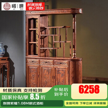 曦世 红木家具非洲花梨(学名:刺猬紫檀)间厅柜实木酒柜 中式隔断玄关柜