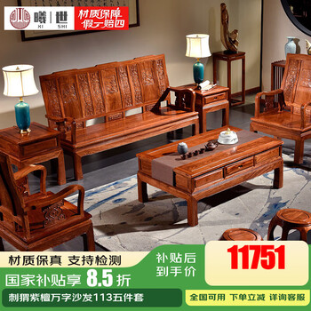 曦世 红木家具非洲花梨(学名:刺猬紫檀)中式沙发 仿古实木沙发组合 别墅客厅家具