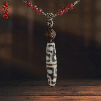 奥音S藏传玛瑙特殊图腾两眼老天珠*民族风老天珠男女款手工项链
