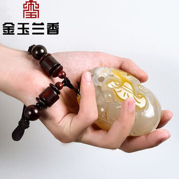 金玉兰香天然玉石玛瑙玉髓手把件巧雕玛貔貅神兽招财玩物带证书