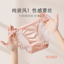 轻奢缎面蕾丝内裤女性感舒适中高无痕透气亲肤提花纯欲大码三角裤