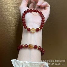 天然红玛瑙手串搭配黄塔晶黄水晶手链简约轻奢原创设计饰品批发款