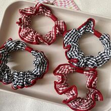 复古黑红格子小肠发圈小清新丸子头发绳时尚百搭少女扎头发皮筋