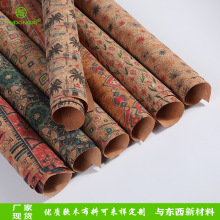 现货批发0.4mm软木印花纹防水面料TC布底家具箱包餐桌垫包装皮革