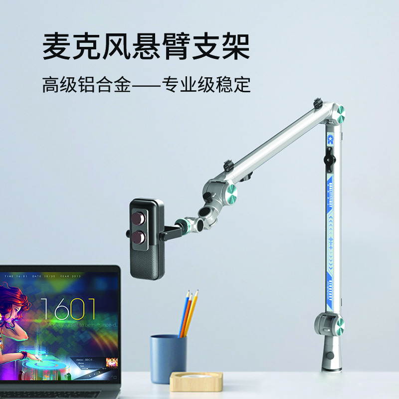 巧螳螂麦克风悬臂支架 桌面话筒台式支架 直播桌面固定防震三段式折叠万向话筒3/8“5/8“接口 星光银