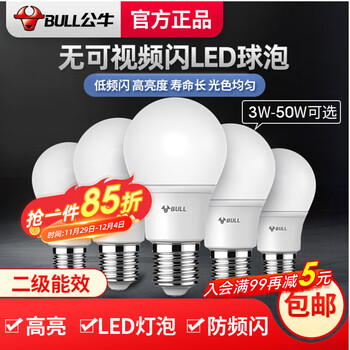 公牛led灯泡超亮节能卧室e27圆形蜡烛家用台灯白炽螺纹飞碟球泡灯