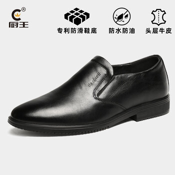 厨王男士黑色小皮鞋男真皮防滑防水厨房厨师鞋软皮休闲增高工作鞋耐穿