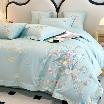 苏丽妃180支全棉纯棉长绒棉四件套轻奢刺绣被套床单床笠四季款床上用品