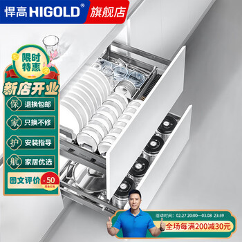 悍高 HIGOLD碗碟架厨房双层抽屉式置物架内置碗篮不锈钢厨房收纳碗碟篮