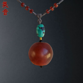 奥音S藏传密宗玛瑙传世敬仰牙黄绿度母老天珠民族风老天珠项链吊坠