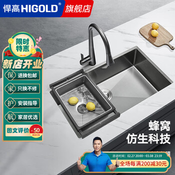 悍高 HIGOLD 厨房黑钛蜂窝304不锈钢手工单槽洗菜盆大单槽厨房洗碗池水槽